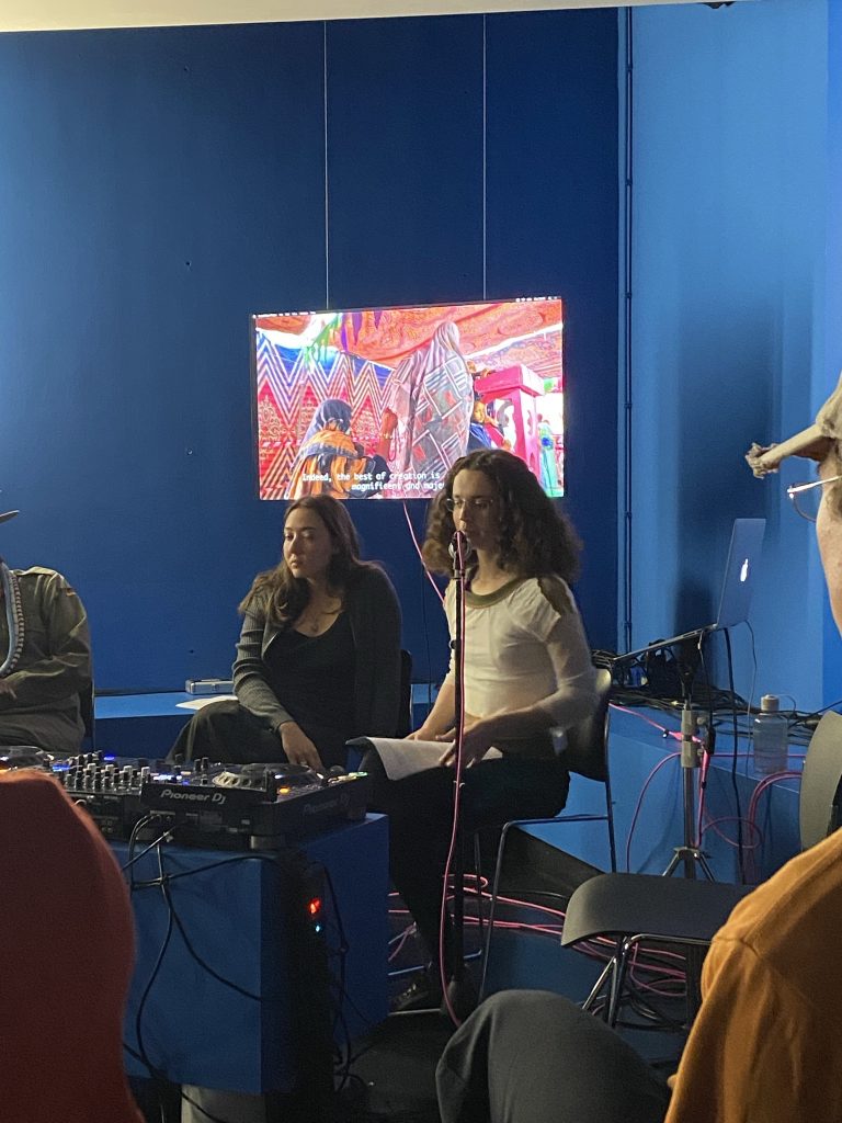 The talk was about listening to networks of students and Muslim scholars. Based on examples of ten months of ethnographic research conducted in N’Djaména, Luca reflected on the joint wish that exists to share and the digital and physical places where Chadians share. Muslim women use applications like WhatsApp and TikTok to be involved in a community where religion is central. Listening is part of women’s activities in religious spaces. The objects of attention are panegyrical poems. She mixed field recordings into a subtle dialogue with empirical contemplations.